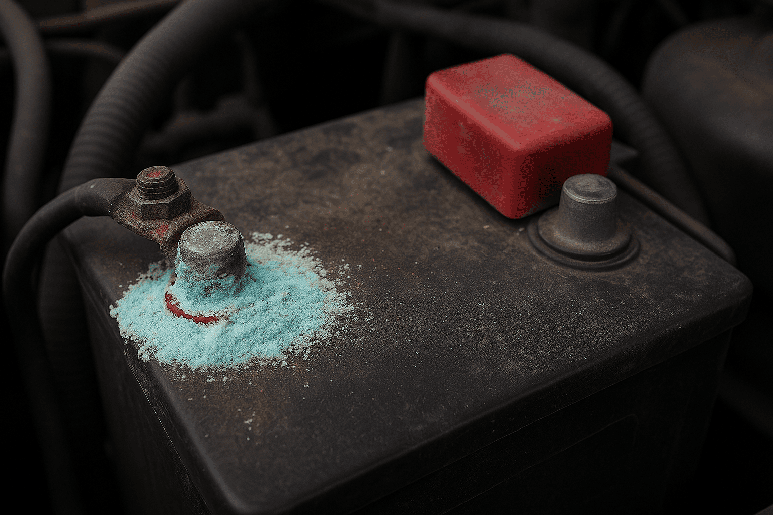- Bornes sulfatados: Una capa blanca, azul o verdosa sobre los bornes impide un buen contacto eléctrico.